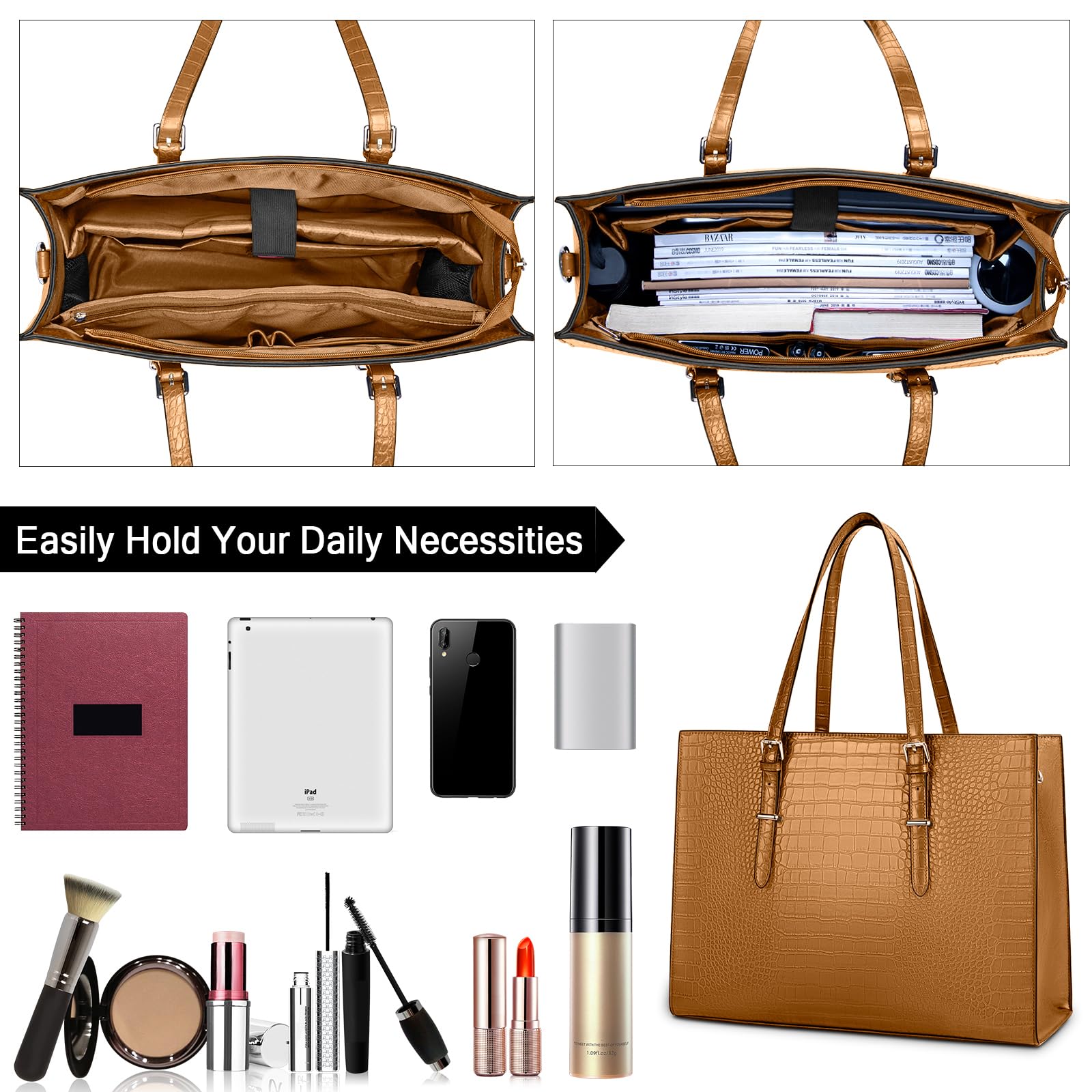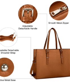 - Durable & Classy Women Laptop Bag:Lubardy tote bag made of prime crocodile pattern leather and polyester lining,offers water-repellent scratch-resistant advantage, trimmed with contrasting antique gold-toned hardware that conveys a classic chic fashion look and feel. The on-trend and easy matching colors will bring instantaneous modernity and freshness to any outfit. In addition,metal feet base protects your bag from damage.