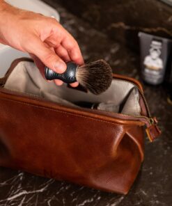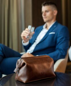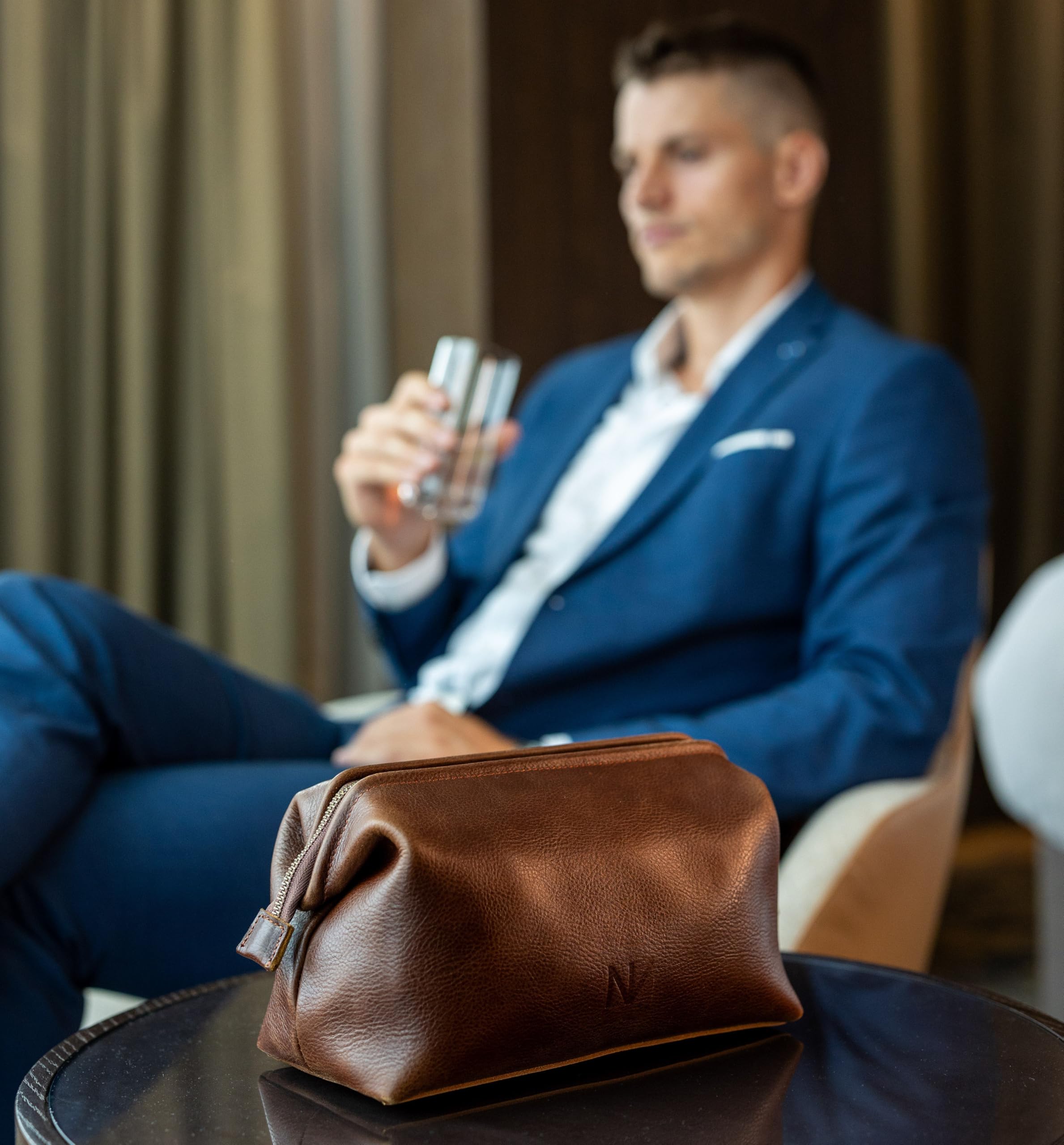 - TIMELESS ELEGANCE: Elevate your style effortlessly with the NV Holders Premium Leather Toiletry Bag for Men. Meticulously crafted for both practicality and sophistication, this accessory ensures your essentials are elegantly organized whether you're at the gym or on a business trip. Perfect for carrying all your grooming needs from razors to shampoo and toothbrushes its sleek, timeless design guarantees a polished look every time.