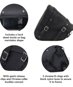 GARGOYLE BELLS Premium Naked Leather Swing Arm Bag For Motorcycle Left Side Solo Bags Saddle Bags For Softails Choppers (Style-1, Black) Style-1