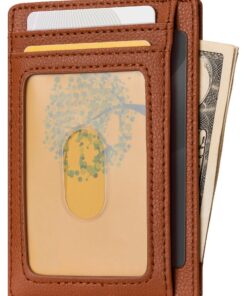 Buffway Slim Minimalist Front Pocket RFID Blocking Leather Wallets for Men and Women – Lichee Light Brown
