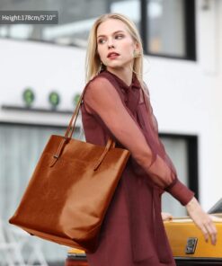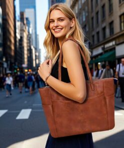 Large Tote Bag for Women Work Vegan Leather 23L Womens Tote Purse with Zipper Ladies Handbags A1-brown