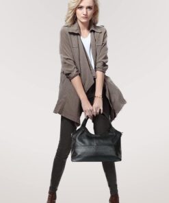 Italian Calf Leather Tote for Women with Zipper, Inner Pocket & Flat Base | Soft Unlined Shopper for Work & Travel Black