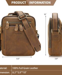 Jack&Chris Leather Messenger Bag for Men, Man Purse Crossbody Bags for Work Business Brown