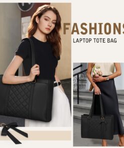 RAINSMORE Laptop Bag for Women 15.6 Inch Work Tote Bags Waterproof Leather Laptop Tote Professional Computer Briefcase Black