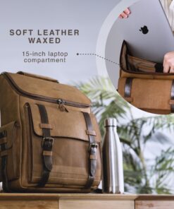 VELEZ Leather Backpack for Men – 15.6 Inch Laptop Bag – Designer Bookbag – Handmade Business Casual Computer Shoulder Bags 01 Brown