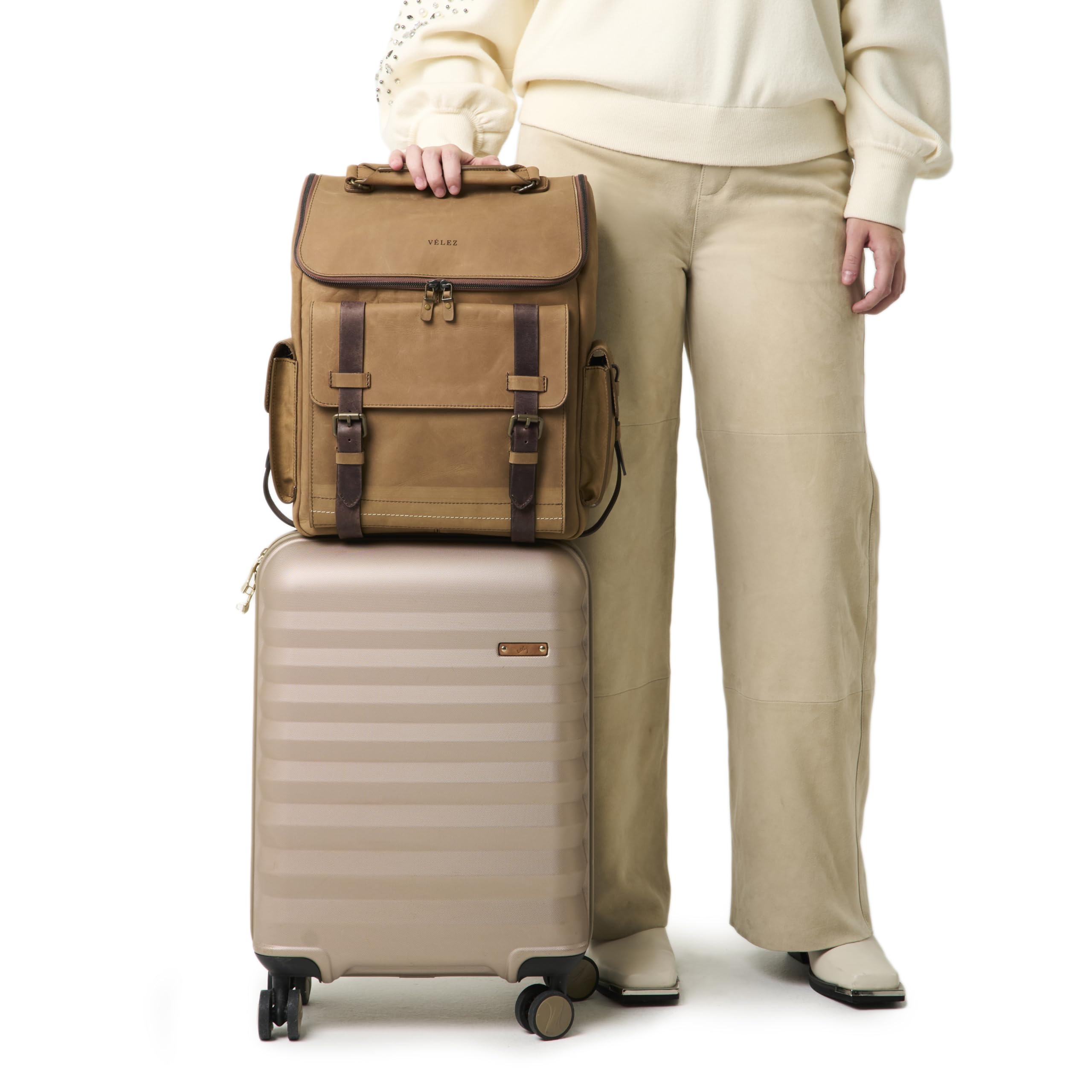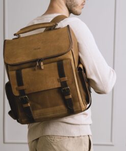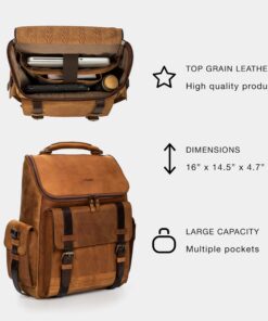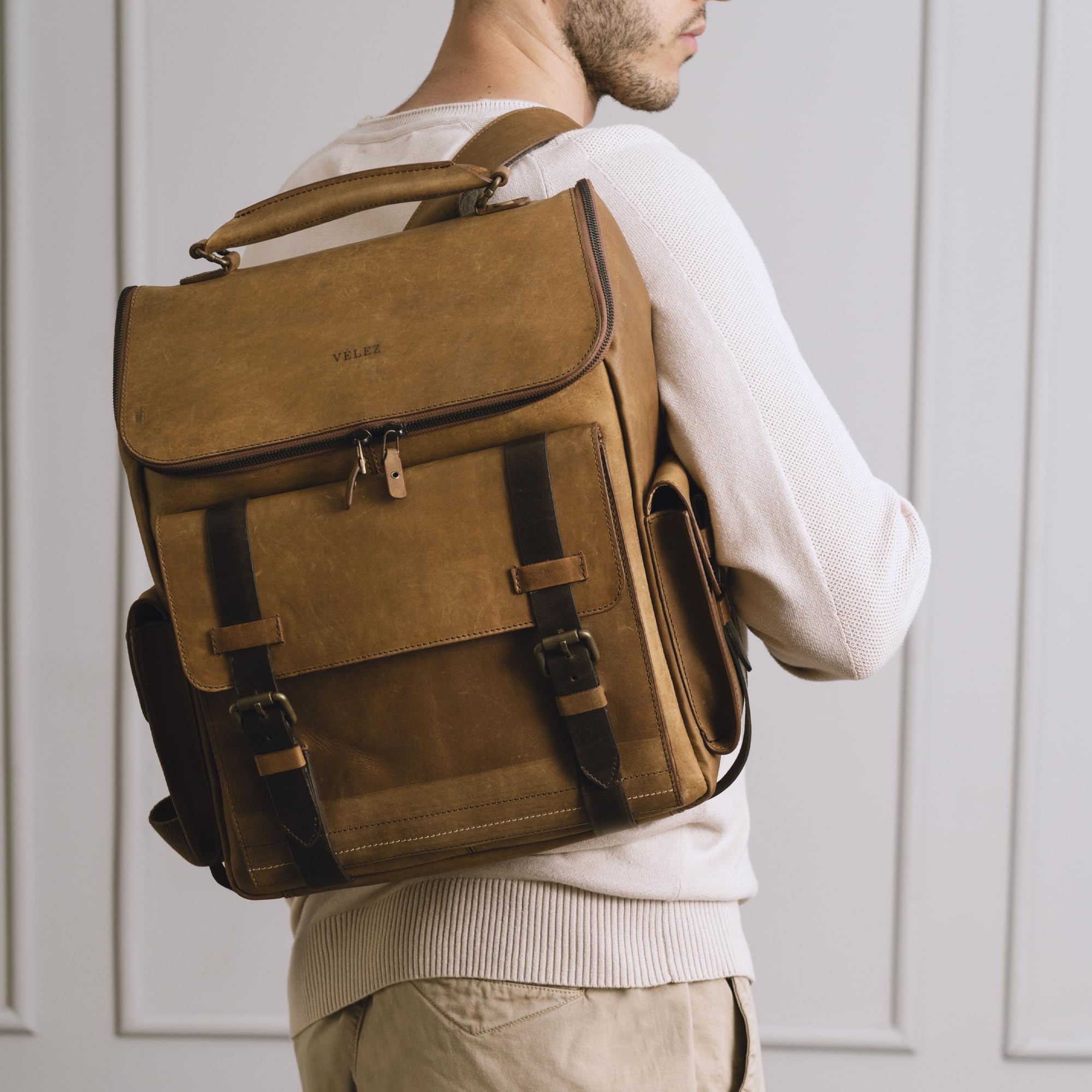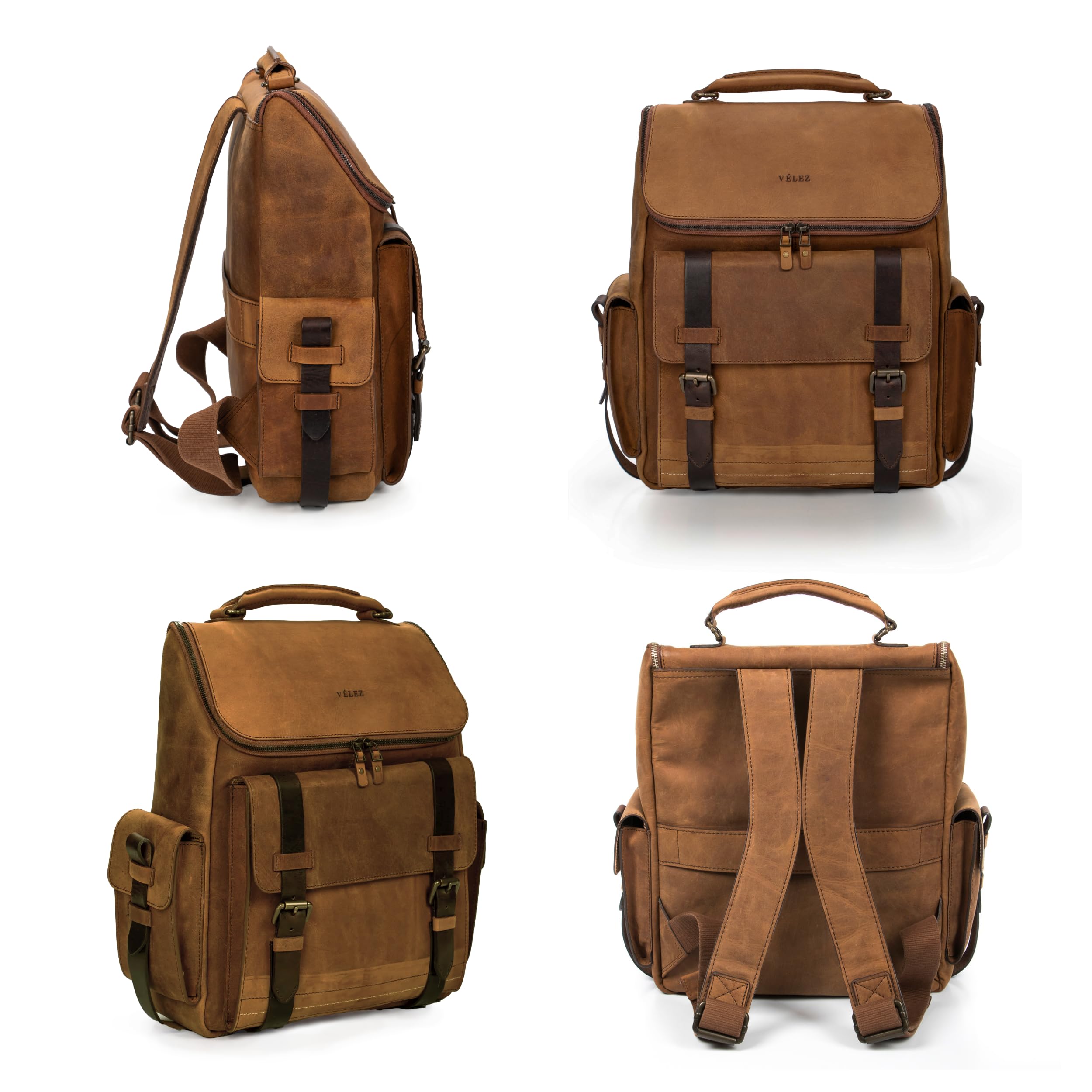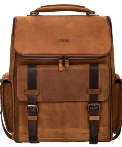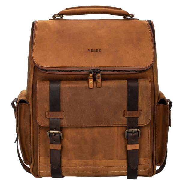 VELEZ Leather Backpack for Men – 15.6 Inch Laptop Bag – Designer Bookbag – Handmade Business Casual Computer Shoulder Bags 01 Brown