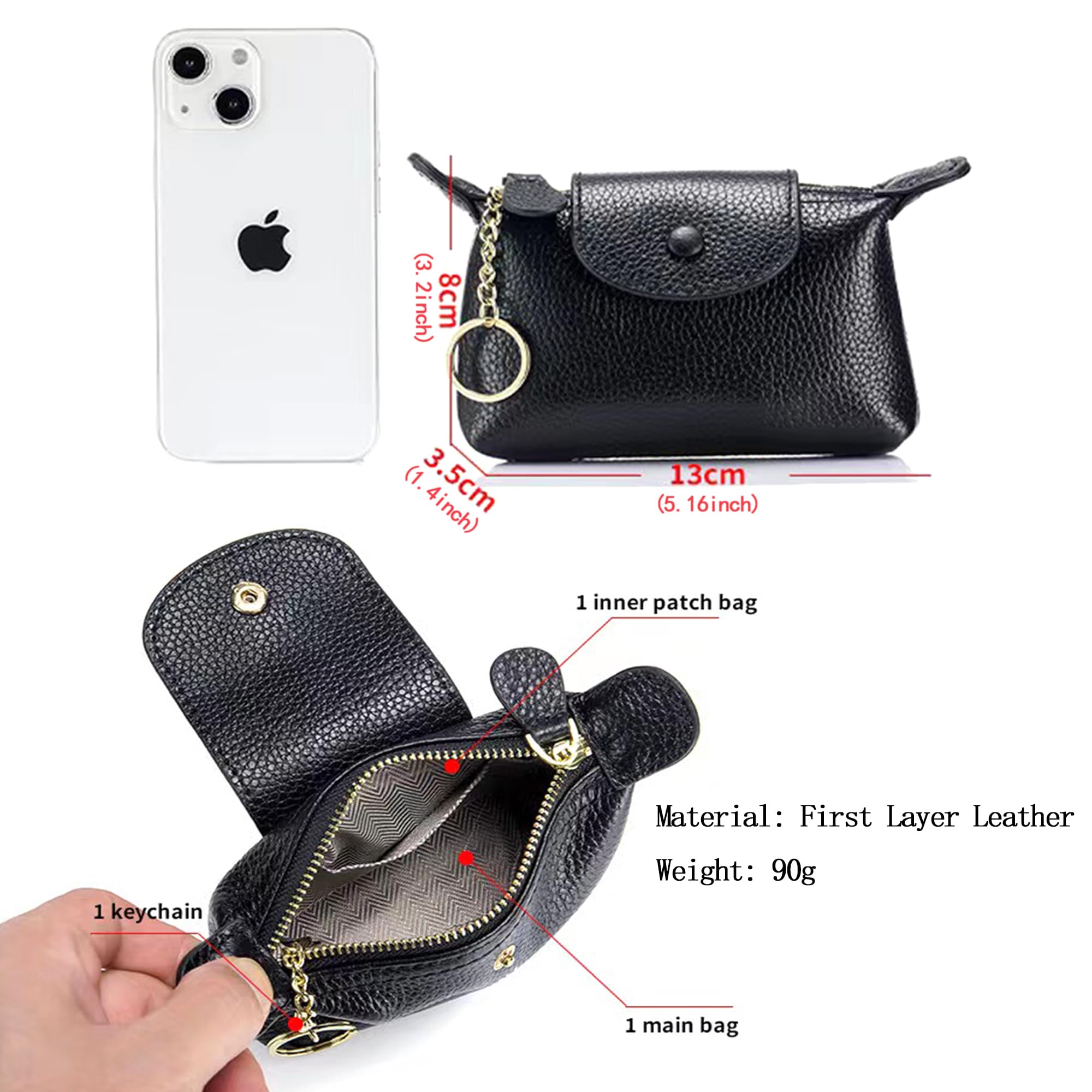 - MATERIAL: Coin purse is made of high-leather, which is soft to the touch, lightweight. The zipper closure design keeps items safe